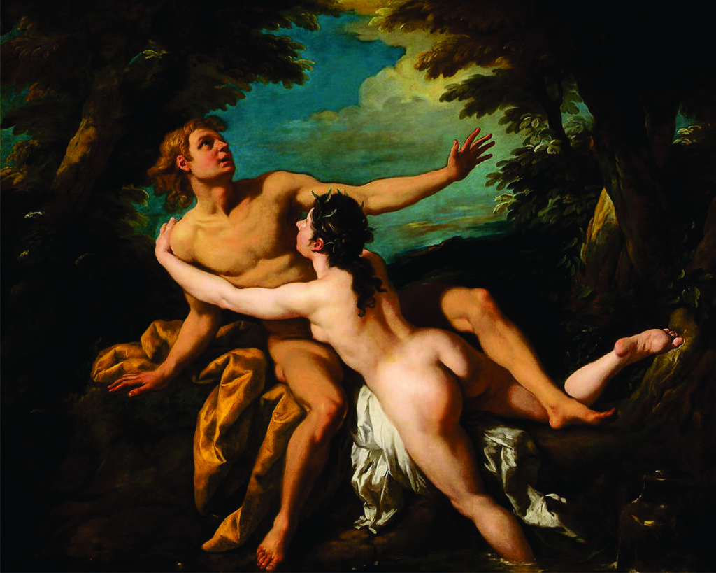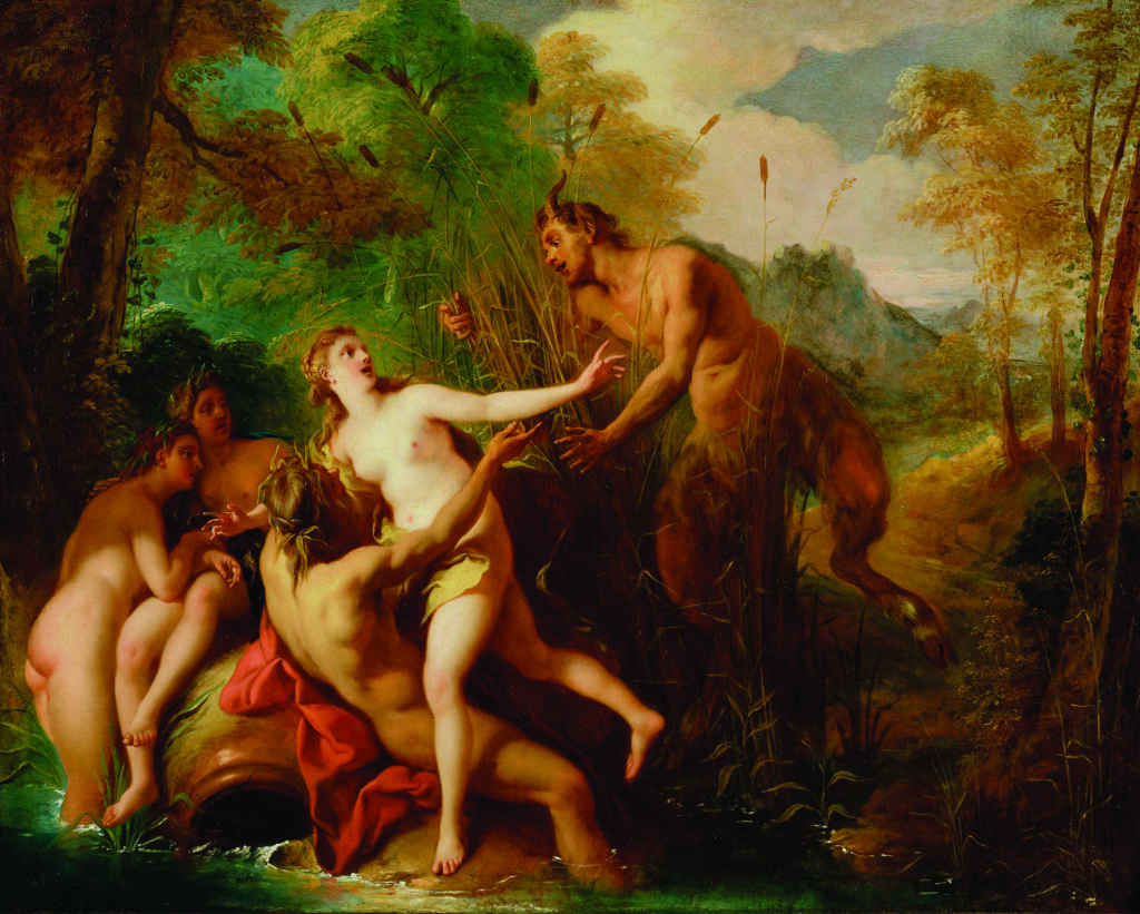 Pã apaixonou-se por Syrinx, uma ninfa seguidora de Ártemis, conhecida por exigir a castidade do seu séquito. Perseguida por Pan, ela correu para a beira do rio e pediu ajuda das ninfas do rio. Em resposta, ela foi transformada em juncos.