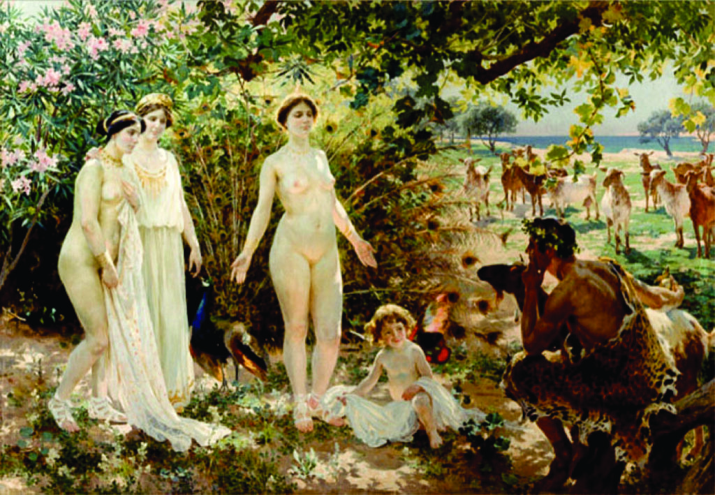 Imediatamente três deusas tentaram pegar a maça: Hera, Palas Atena e Afrodite. Criado o impasse, pediram para Zeus resolver com quem ficaria a maçã, mas este, não querendo se comprometer determinou que o mais belo dos mortais, o pastor Paris, seria o juiz.
