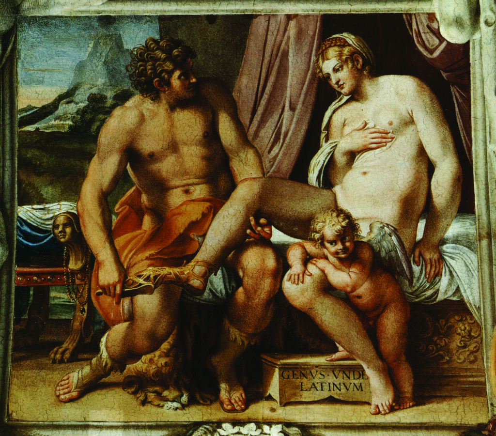 Venus e Anchise, Annibale Carracci, Fresco de la bóveda del Palacio Farnesio, Roma, 1597