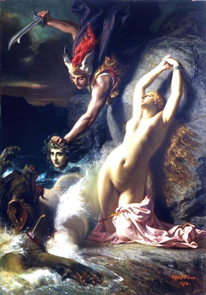Neste momento chega o herói Perseu e se apaixona por Andrômeda. Ele promete ao rei que a salvaria desde que este lhe desse a filha em casamento. O acordo foi aceito e Perseu derrota o monstro, salva a princesa e a devolve aos pais, aguardando as prometidas núpcias.